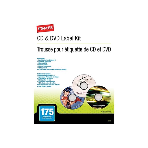 Staples Laser/Inkjet Media Labels, Matte White, 50 Disc, 75 ... 50 CD/DVD labels, 75 Multipurpose labels, 50 spine labels, 20 jewel case inserts, and 10 tray inserts Compatible with laser and inkjet printers for maximum flexibility Utilize Avery DesignPro software for professional-looking labels that stand out Provide feedback top