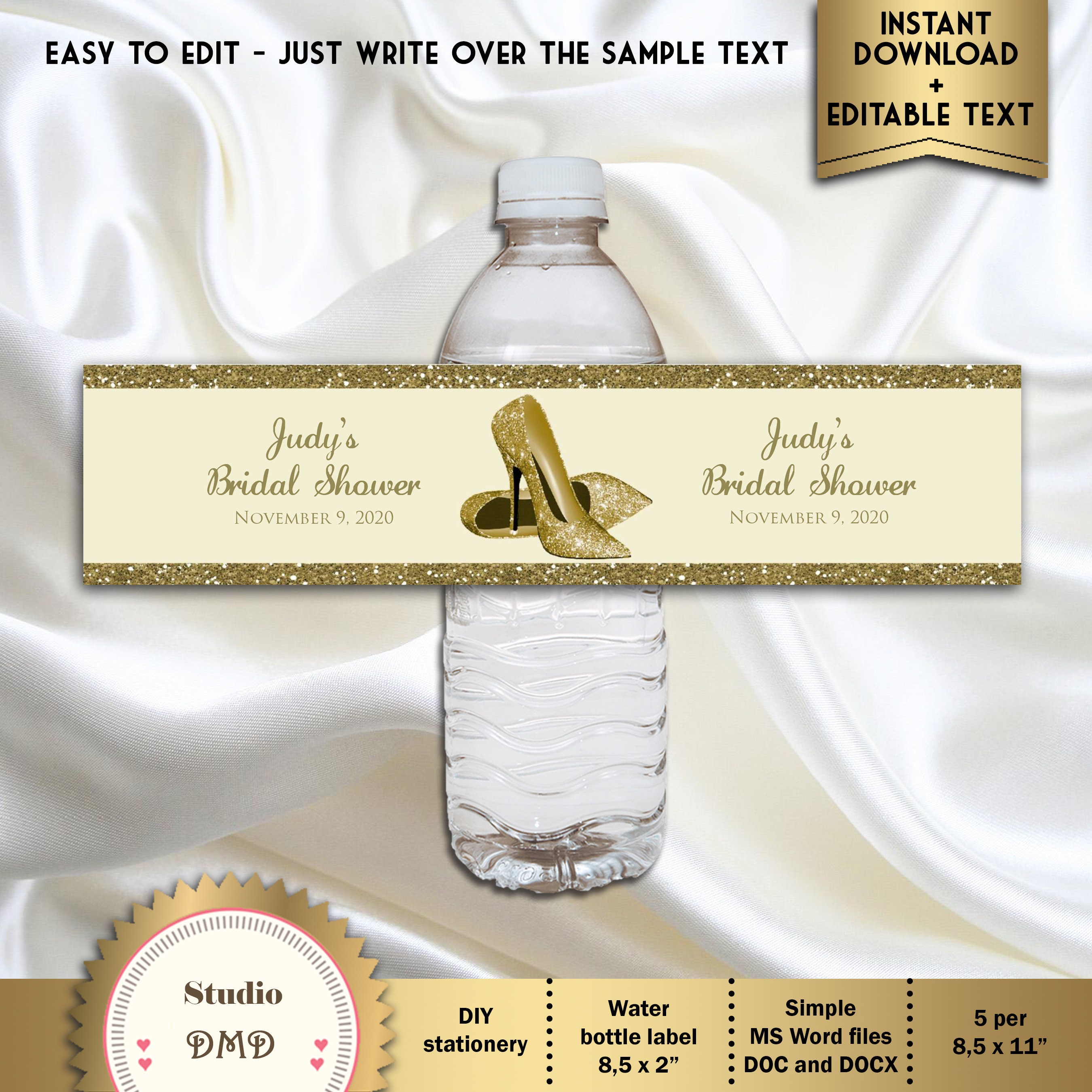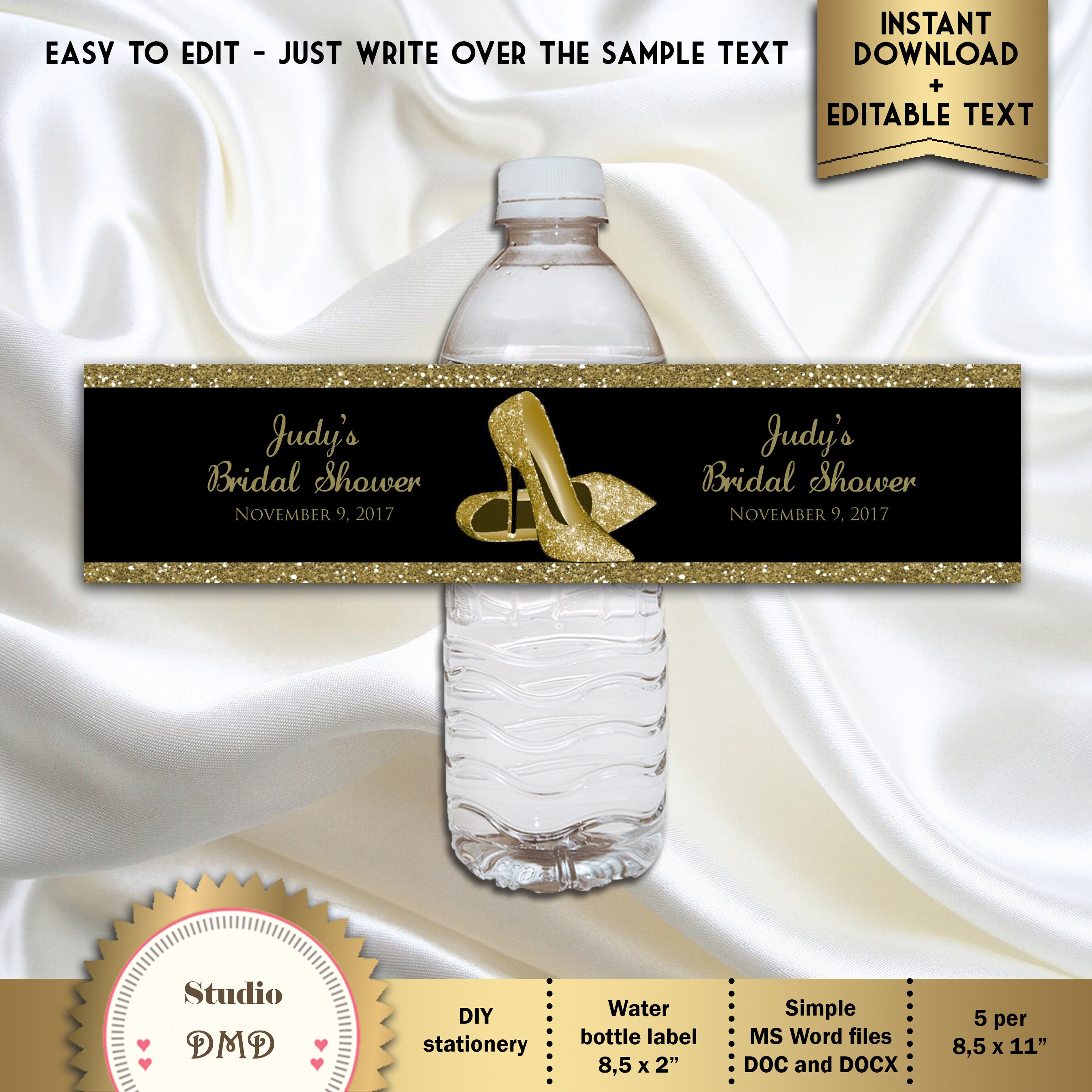 How to make custom water bottle labels with MS Word This PRINTABLE (DIY) is perfect for your Royal Princess Gold Glitter Crown theme inspired baby shower! Party materials can be printed at home or your local print shop. Print, cut and party! It's as easy as that! This listing is for a printable bottle labels: * PDF File (5 labels print per 8\" X 11\" sheet of paper) * 1 JPG file Files ARE NOT ...