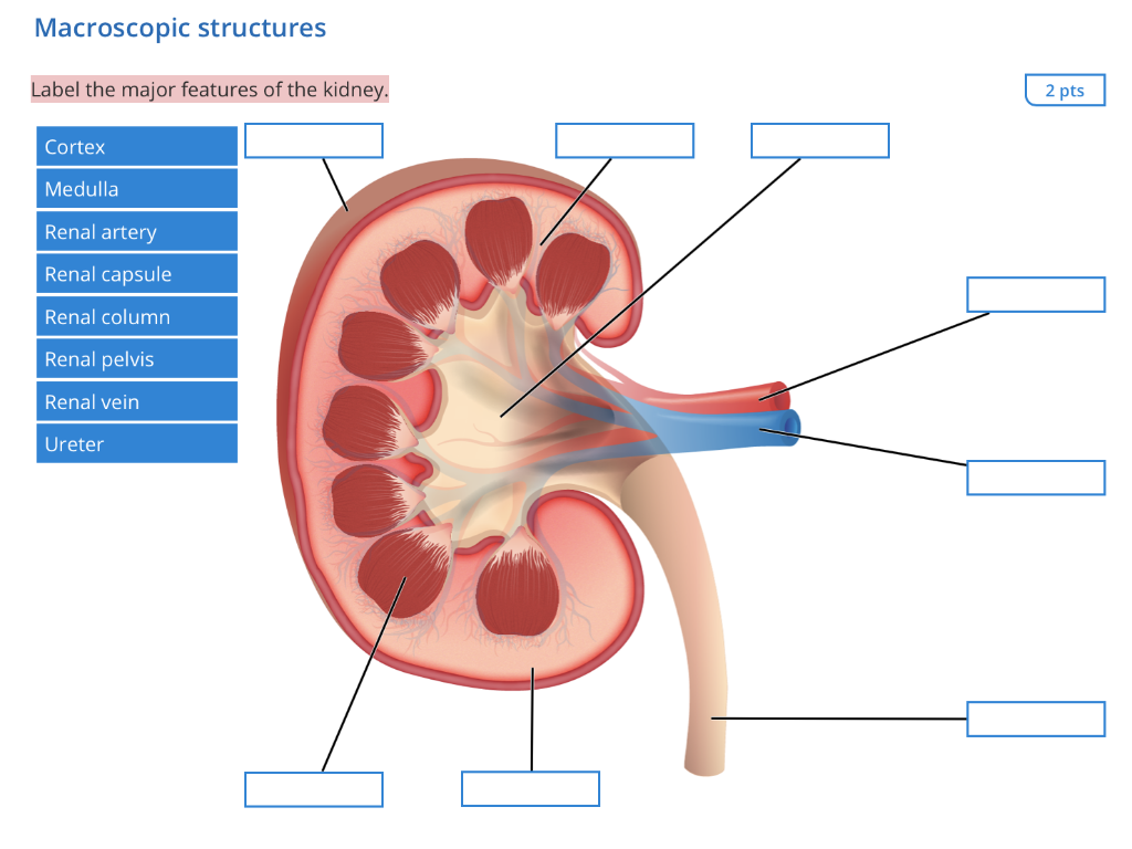 Picture of the kidney with labels